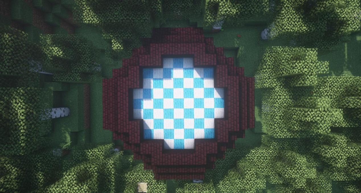 为了方便大家观察,用蓝色羊毛和白色羊毛标出了参考方块。