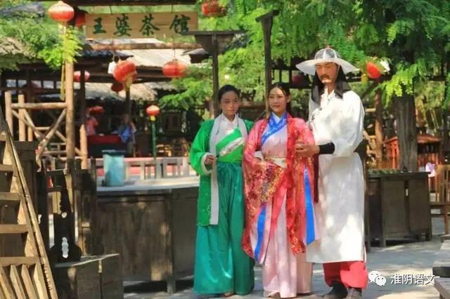 我们来到小吃街,这里的风味小吃太诱人了,经营者都宋代商人打扮,在这里旌旗酒家比比皆是,更别说推小车卖切糕的、卖炊饼的、卖刀枪剑戟玩具的。也有挑着货担的,拉着黄包车的,牵马带客的,生意繁荣。当然,这里更多的是租服装的铺子,你可以扮上你最喜欢的角色,在行人中自拍,跨越时代的融入其中。