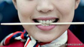 头摆正,轻轻咬住雪糕棍,观察一下它是不是一个平行的状态,如果说它是两边不平行的状态,可能会存在颌平面偏斜的情况。