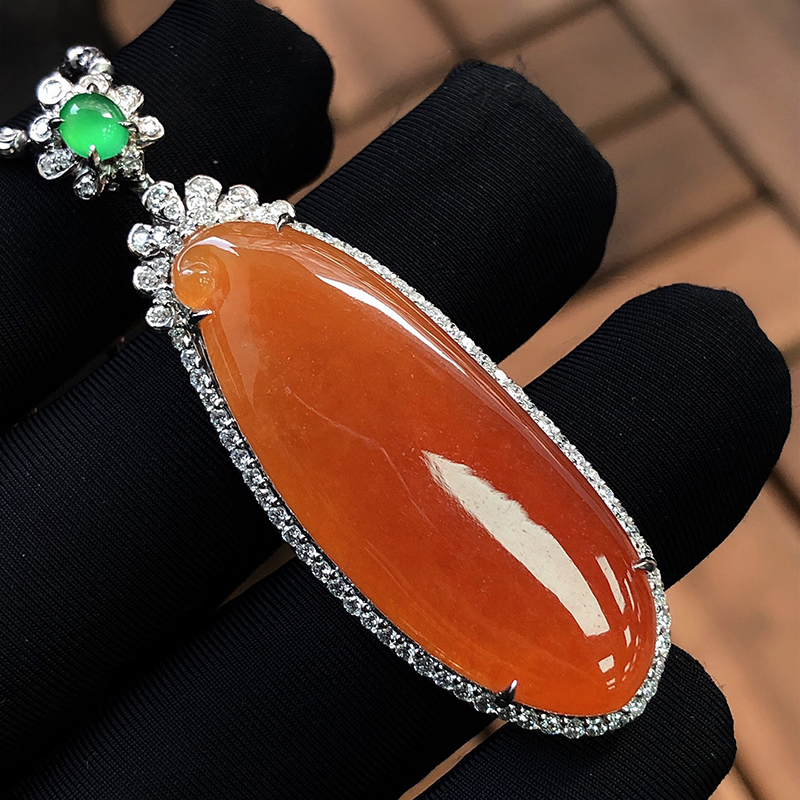 看翡翠色上是否有水头,这是判断红翡是不是烧色最显著的识别特征。换句话说,红翡除了色泽明艳,色浓,色阳,色匀,色正,还要质地剔透,有水汪汪的质感。
