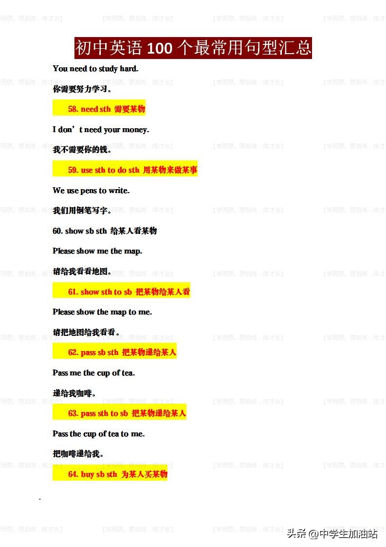 初中英语100个句型,搞定初中80%句子!孩子作文逆袭全靠它