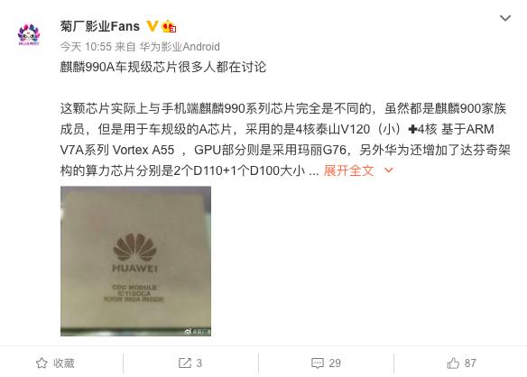 据金V@菊厂影业Fans透露,麒麟990A定位车规级A芯片,与手机端的麒麟990系列完全不同。