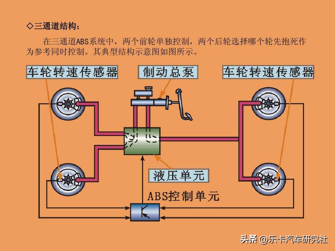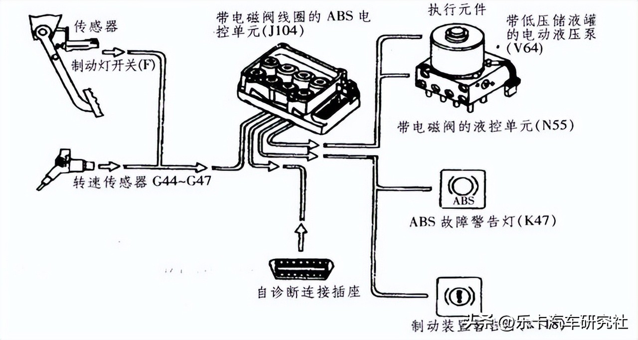 通俗的讲,ABS系统可以防止车轮抱死,避免车辆失控。其中ABS控制模块是整个系统的大脑,负责处理指令,轮速传感器是整个系统的眼睛,负责传输信号,ABS控制单元是整个系统的身体,它集成了电动泵压力调节装置,负责执行指令。