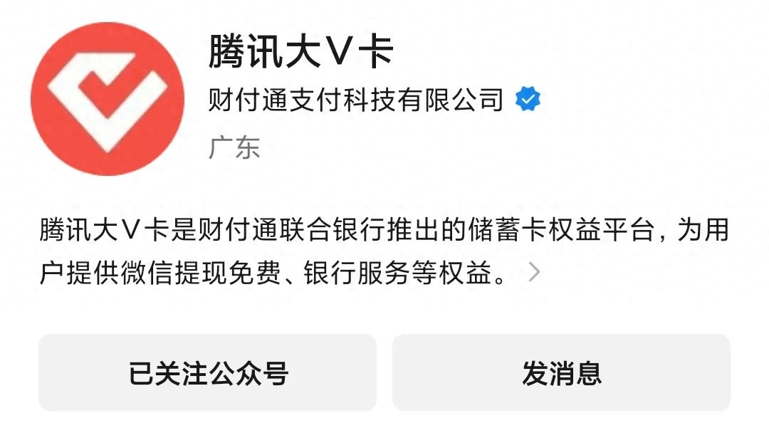 1、关注【腾讯大V卡】公众号