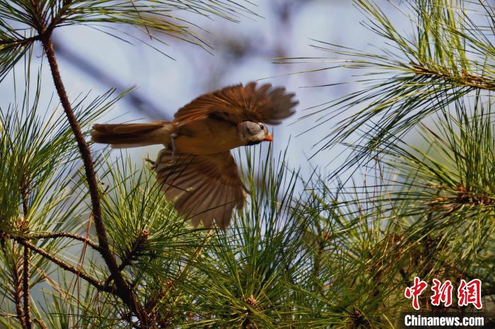 中新网合肥2月14日电 (刘军权)日前,摄影爱好者在安徽省黄山市祁门县金字牌镇拍摄到了十余只灰头鸦雀在林间穿梭的身影。只见它们时而停留在枝头左右观望、时而在灌木丛中敏捷地穿梭、时而飞到树顶欢叫。