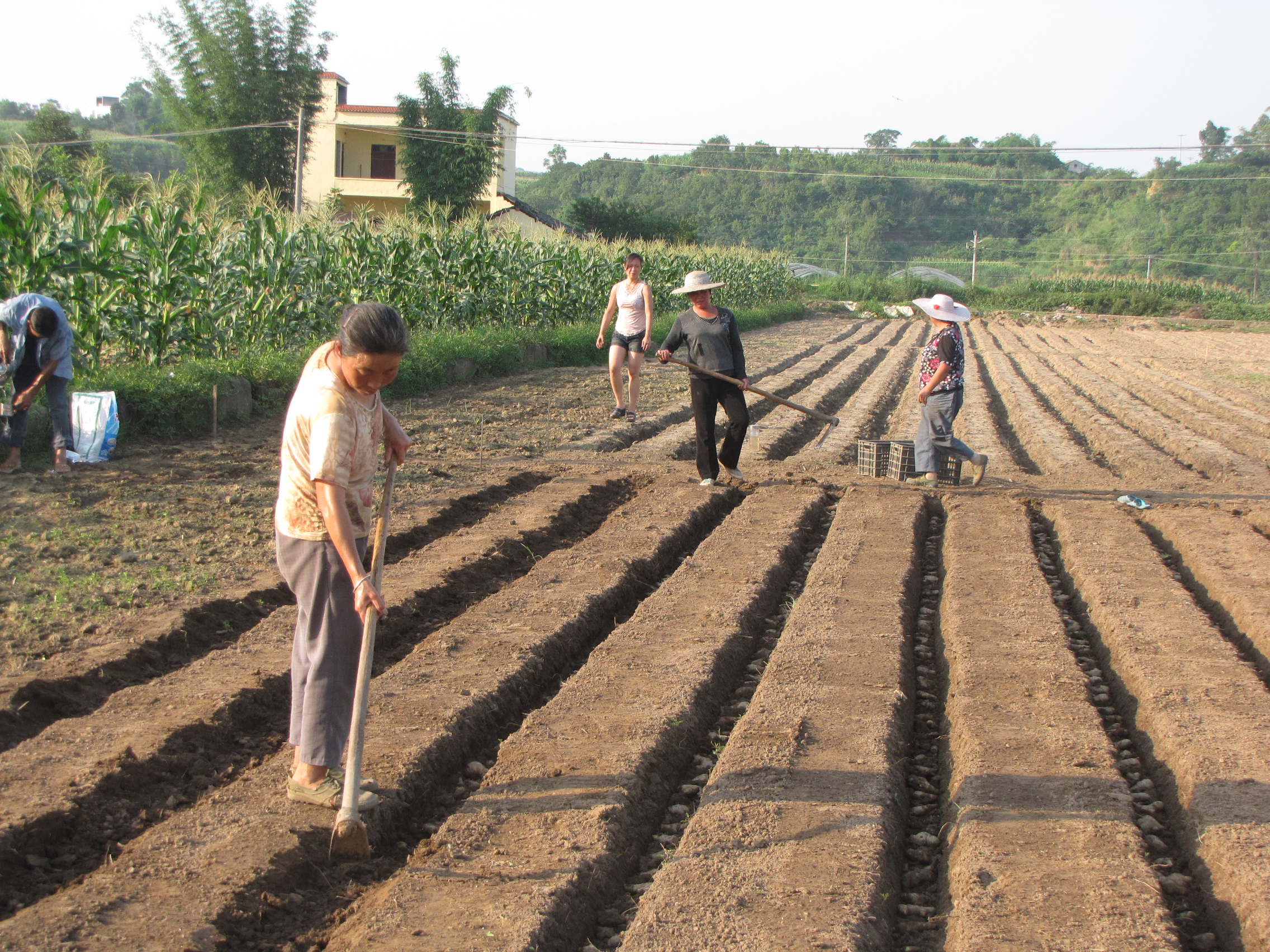 开沟栽培是采用范围最广泛,历史最悠久的生姜栽培方式。由于生姜的根系不发达,如果任其自然生长而不为其创造疏松、湿润、黑暗的土壤环境条件,那么生姜地下茎就不容易甚至根本不可能形成修长脆嫩的外观和内在品质。开沟培土的目的就是为地下茎的生长创造有利条件,不仅可以改善生姜的外观和内在品质,而且也是有效的增产措施。