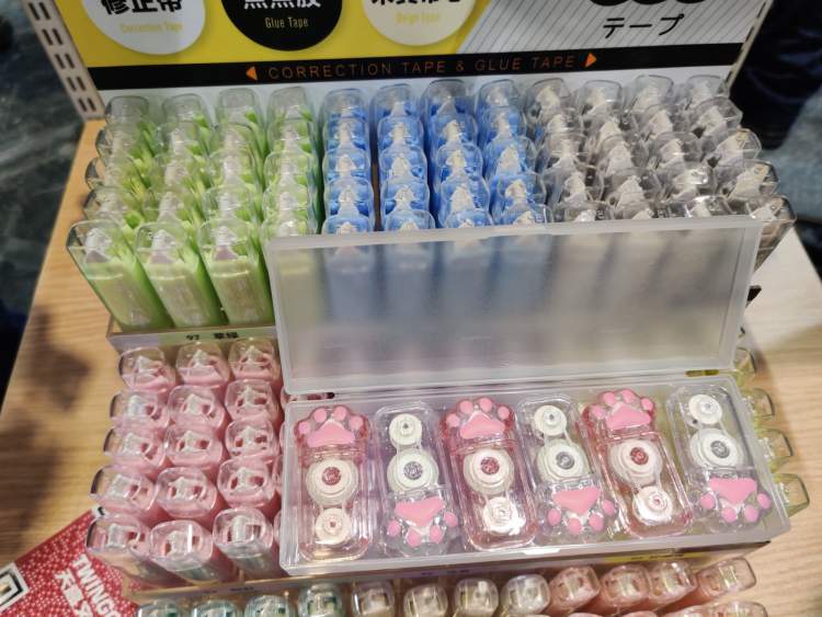 这家文具品牌叫做天高,专门做修正带。工作人员说,他们已经在这一行做了十几年二十年了。有马卡龙、小山、口红、甜甜圈等诸多创意款,还有覆膜的防断设计,是值得一试的小众品牌。