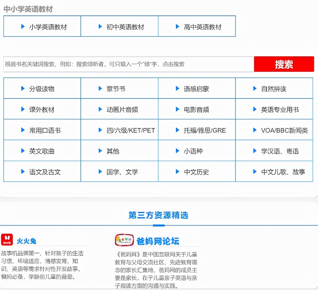 倾听者没有配套的app,但是资源方面也还可以,只不过需要额外的下载安装即可。可以用USB线连接电脑,从官网上下载各种资源,纵观全网可以看到资源大部分都是英语资源,分类也比较清晰。下载的时候建议按照下载内容放到不同的文件夹里,这样不容易混淆。