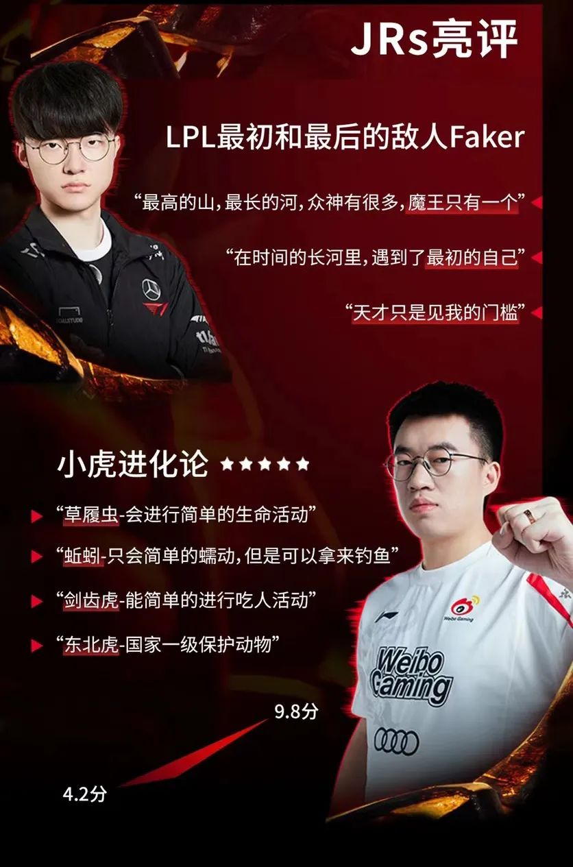 欧阳玄:首先在虎扑我们不会去区分传统体育用户和电竞用户,我们统一的都称为赛事用户或者竞技体育用户,只不过是这批JRs在电竞板块里更能体现出他们的创意和幽默感,能够灵活运用各种比喻或黑色幽默,让人眼前一亮;只能说这种有趣的创新力不仅体现在评论里,也体现了JRs对游戏和赛事的独特理解能力。