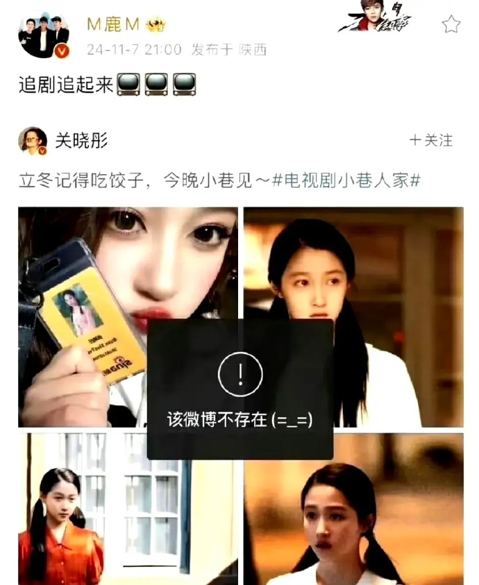 自2024年鹿晗帮关晓彤宣传完《小巷人家》又删除后,二人便再未公开互动过。