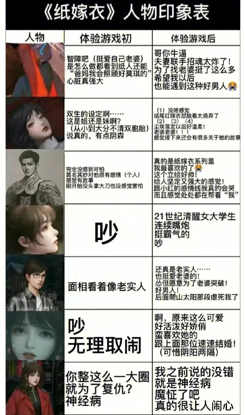 其实吧,占比多数的轻度玩家不会热衷于解谜,民俗恐怖也只是个噱头。那么多代过来,吓人的玩意早就被玩家吃透了,说实话已经没多少人把《纸嫁衣》当成恐怖游戏玩了。