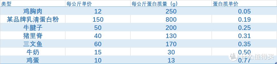 鸡胸是蛋白质单价最低的食物,也就是性价比最高的蛋白质补充食物。