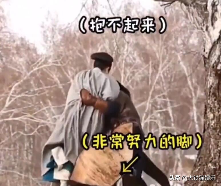 一段山坡上抱女主的戏份,本应该表现是男友表爆棚的时候,可惜他脚在地上拼命挣扎,似乎使出了吃奶的力气,女生仍是没有被腾空抱起。