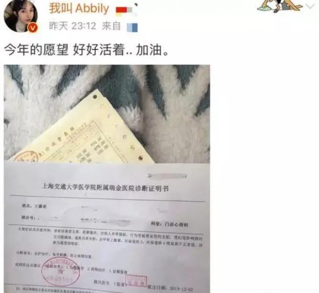 照片里边是艾比自己的病情诊断书,证据描述的情况来看艾比患有重度抑郁症。
