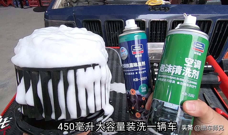 我用的这个空调清洗套装,450ml大容量装,洗一辆车绰绰有余。