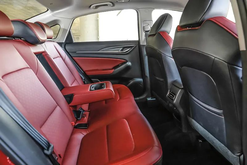 对于逸动PLUS的内室,甚至可以用惊艳来描述。红黑撞色动感袭人,红色座椅采用了赛车式桶形设计,具有很好的包裹性。一体式双10.25英寸联屏被命名为星际指挥舱,极富视觉冲击力。无论是安卓还是IOS系统用户,都可以通过WiFi或数据线连接实现手机投屏。仪表板、门板、中控台等身体可及之处都采用了软性材料包覆,质地细腻,触感舒适。空调采用了钢琴式物理按键,设计精美,操作方便,反馈力度恰到好处。就连车内的开门手柄都带有良好的阻尼设计,避免了手柄回位时的“砰砰”声。