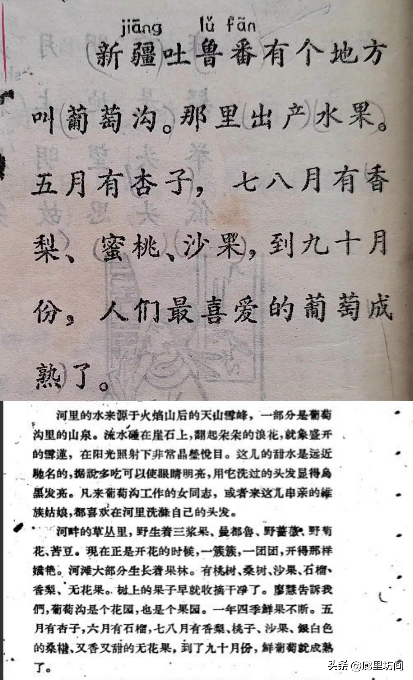 老课文:80后课本里的《葡萄沟》 部编版的作者备注有点问题