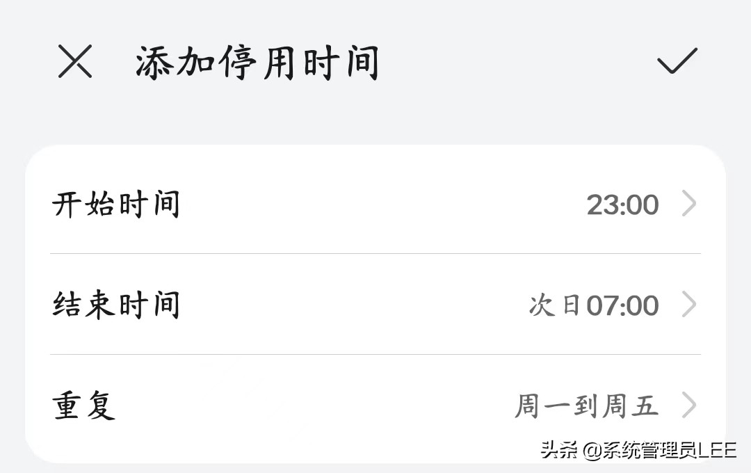 设定远离屏幕时间(比如说点晚上11点以后,设置远离屏幕时间,这样就避免了我们在夜晚关灯后还会躺在被窝里面刷手机)。