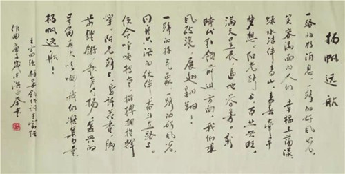 贵州省退休老干部王克龙聆听歌曲《扬帆远航》后留言道:“好消息好风光幸福荡漾,阳光路山水绿百业兴旺。歌声美人心齐拼搏路上,复兴号聚力量扬帆远航!”