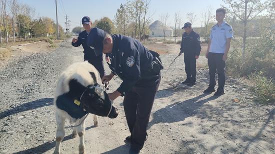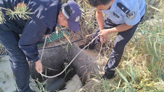 中新网新疆新闻10月18日电(张萍)10月14日上午,六十户派出所民警接到群众求助称,他家的小牛犊在吃草时不小心踩空掉进辖区一水井内,情况危急,请求帮助。民警接到求助后,立即呼叫增援力量带上救援工具赶往现场。