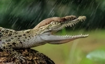 生活在云南雨林的动物也会在雨水来临之前爬回自己的巢穴,还有一些蛇就近乘凉。