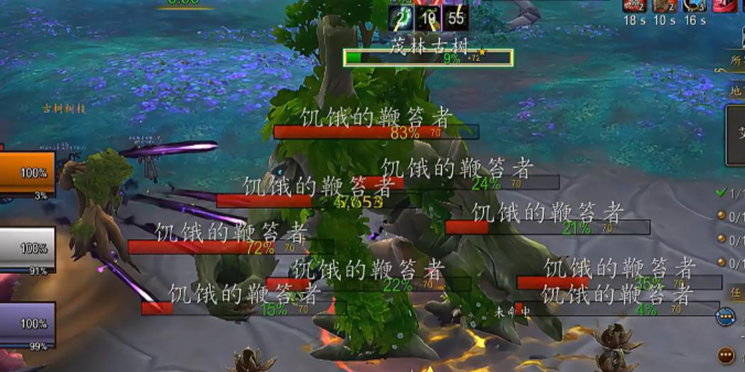 第3个插件,threatplates,大名顶顶的姓名板插件,能让你在眼花缭乱的AOE过程中看清楚怪的血量和仇恨,红色血条的时候就是自己是仇恨是危险的,绿色血条就是安全状态,同时在血条上还可以显示怪物身上的debuff和buff时间,着重会显示控制技能,pvp玩家的最爱,还会显示怪物施法条,如果你真的看不到不会打断,那你就把施法条调整到像我这么大,所有的东西都可以自定义,血条长度,宽度,buff大小等等。