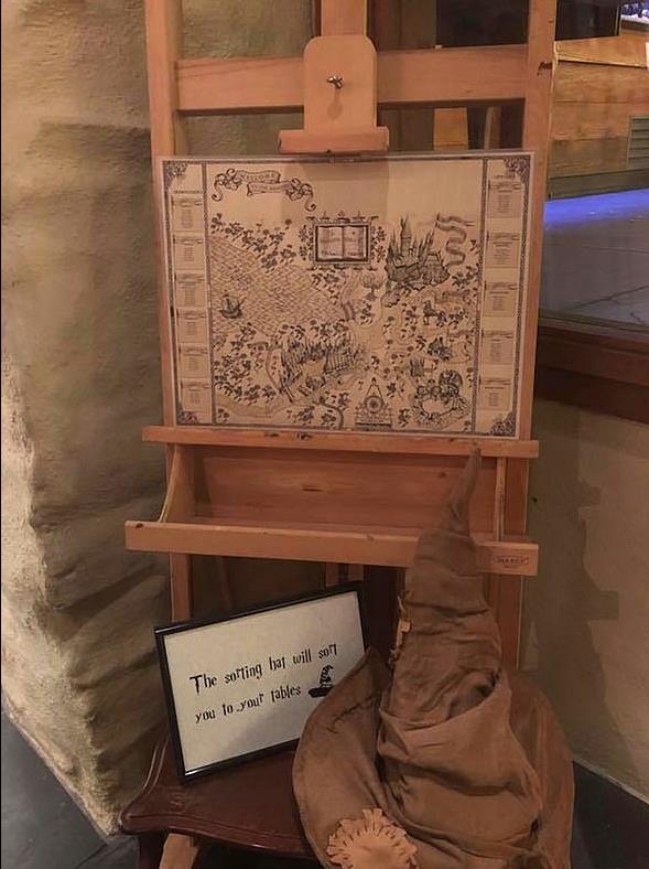 桌子被装饰成霍格沃茨魔法学校的风格。