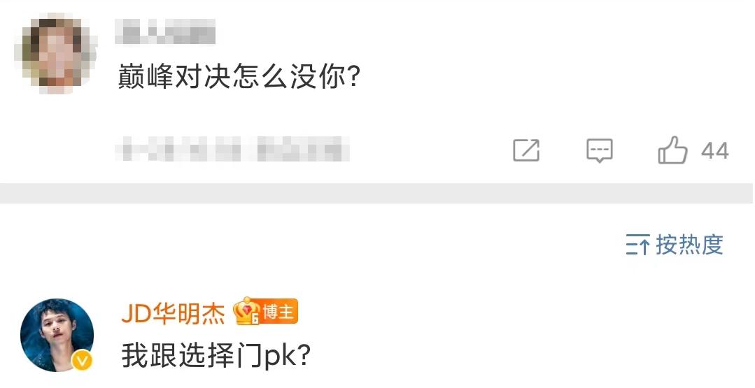 即便JD没有被官方平台列入违法失德艺人的名单里,但丑闻的影响力还是让这位冠军失去了大好前程错过了这次的“巅峰对决”。