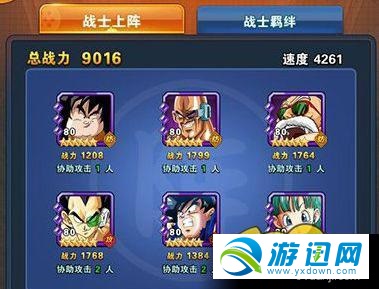 亚奇洛贝(防)、那巴(防)、龟仙人(防)、拉蒂茨(攻)、孙悟空(攻)、布尔玛(辅),3防2攻1辅组成了强有力的肉盾型战队,非常适合新手玩家前期使用。