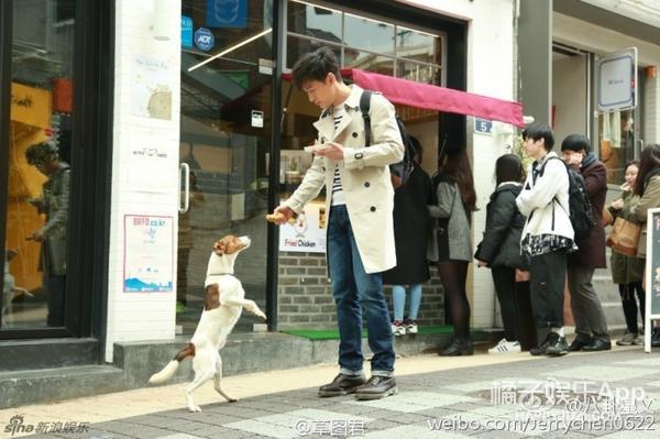 胡歌清爽风衣逛韩国,撩妹不够还要撩狗!