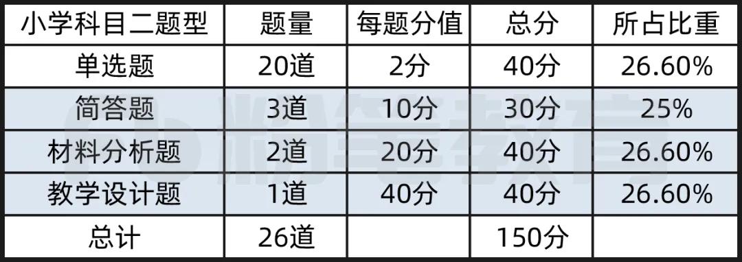小学科目二《教育教学知识与能力》试卷,每种题型所占比重如下表: