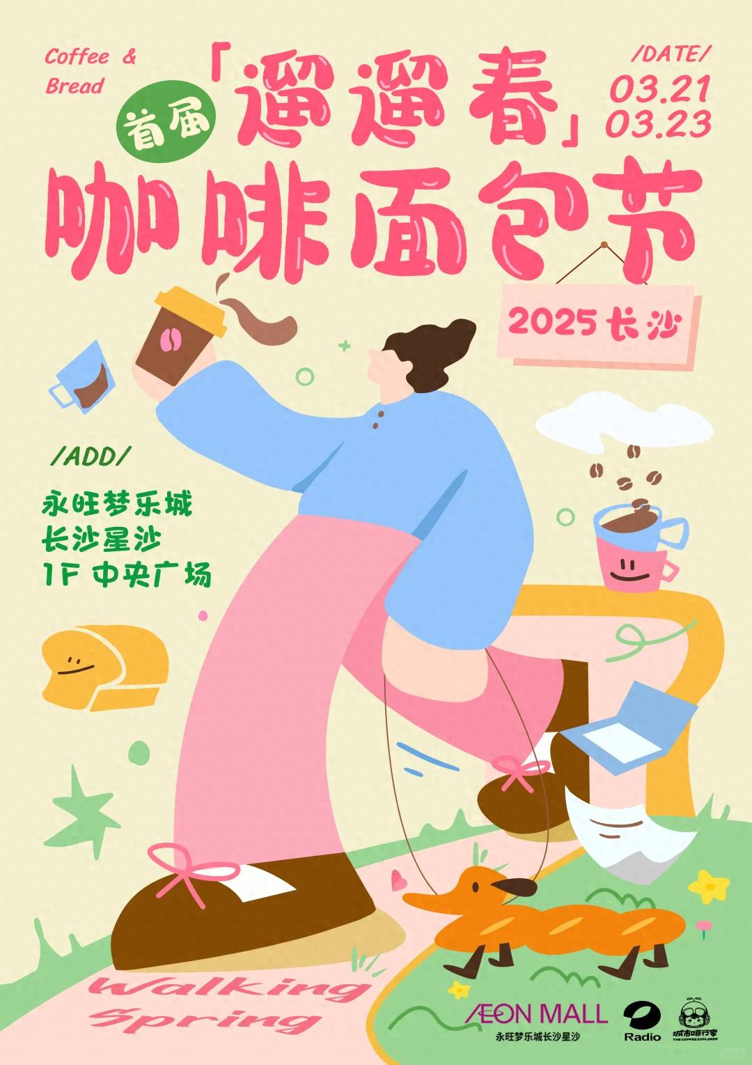 2025长沙遛遛春咖啡面包节的时间定在3月21日至23日,地点在长沙永旺梦乐城1F中央广场。