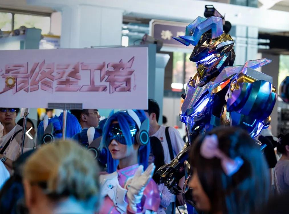 大多数人最先见到这套机甲神装,多半是在短视频平台上——前几天在杭州举办的CICAF(中国国际动漫节)上,粉色机甲就以实物的形式被“空投”到现场,在众多身着同色系皮肤COSER的簇拥下,《和平精英》的“粉海”成为了这届动漫节第一个出圈的小爆点。