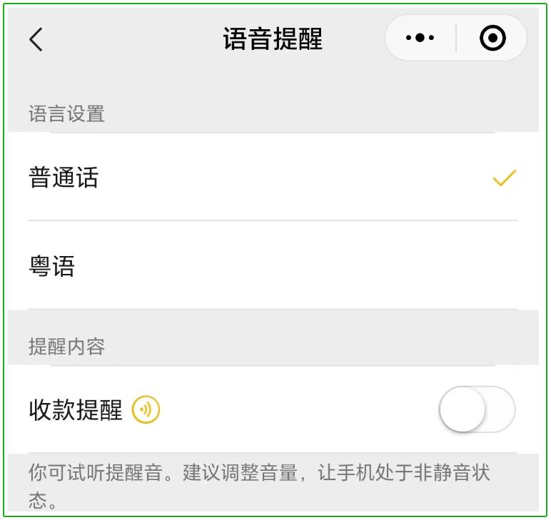 到这一步,微信收款到账语音播报的功能就打开了,再有顾客扫码付款时,微信就会自动发出已收到多少元的语音提示了。