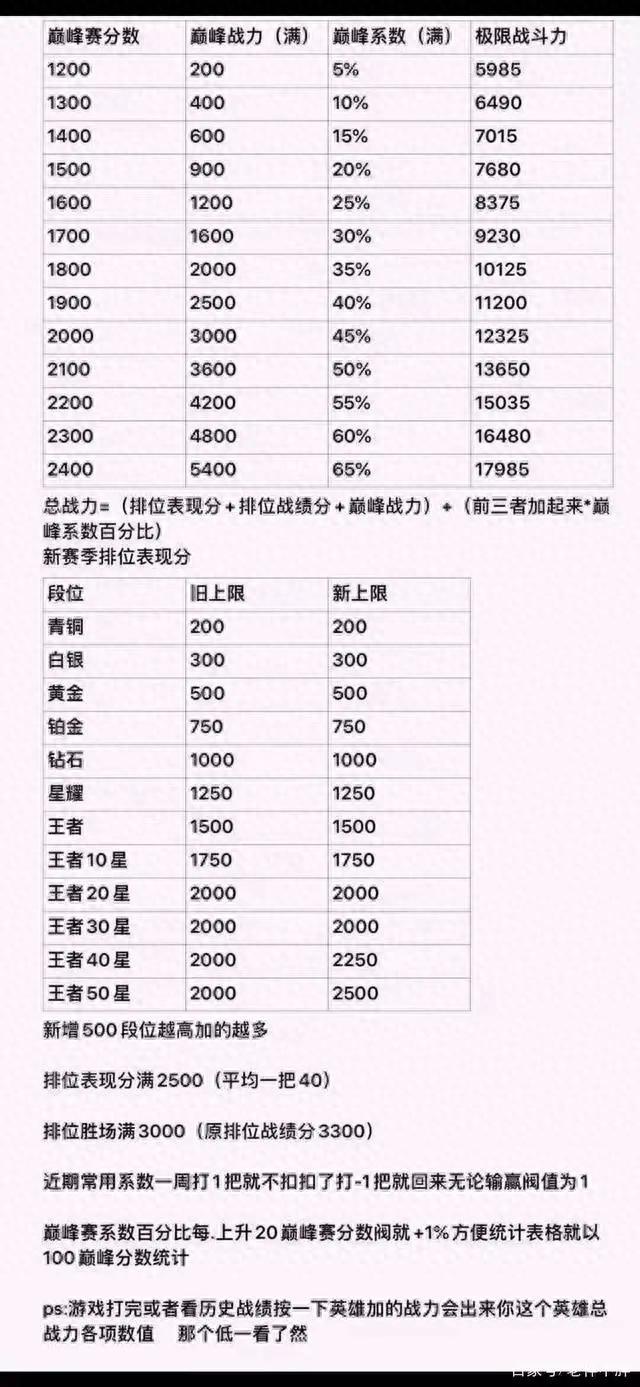 王者荣耀新赛季英雄各分段最高表现战力,巅峰战力详细图