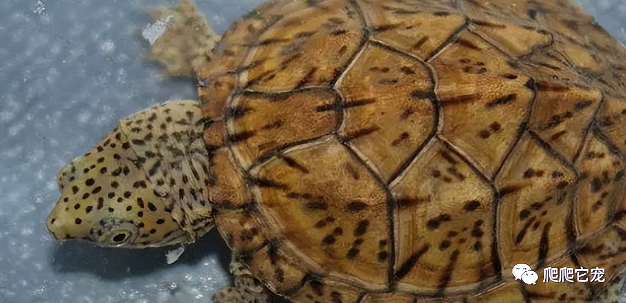 一、巨头麝香龟的外观特征:之所以叫它巨头麝香蛋龟,就很显而易见的就是它的大脑袋;而头大也意味着它们的咬合力很强,所以体型稍大一点的巨头蛋龟喜欢吃螺蚌等硬硬的食物,它们的大脑袋很可能就是为了适应这种饮食习惯而演化过来的。另一个最显著的特征就是散开在头部的点状纹路了,显得颇具观赏性。另外,巨头的背甲有三条明显的脊棱,腹甲小,粉红色或黄色,有一个不甚明显的铰链关节,和单枚的喉盾。根据公母,巨头麝香龟的外形略微有些差异。雄性具有末端呈刺状的大尾巴;而雌性尾巴的末端,仅只刚刚能够到背甲的边缘。当然,这两年很多人口中常说的新版巨头和老版巨头,在此我详细介绍一下,帮助广大龟友做个区分。