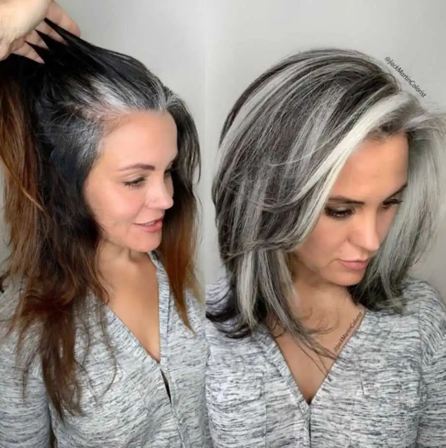 最好提前几个月不要染发,给头发根部足够的时间生长,让染发师更容易配比出接近你真实白发的颜色。因为每个人的白发差别可能会很大,有些人是自然温暖的灰色,有人的白发偏冷白,甚至银色,所以要允许长出的发根足够长,让染发师能看到的白发越多越好。