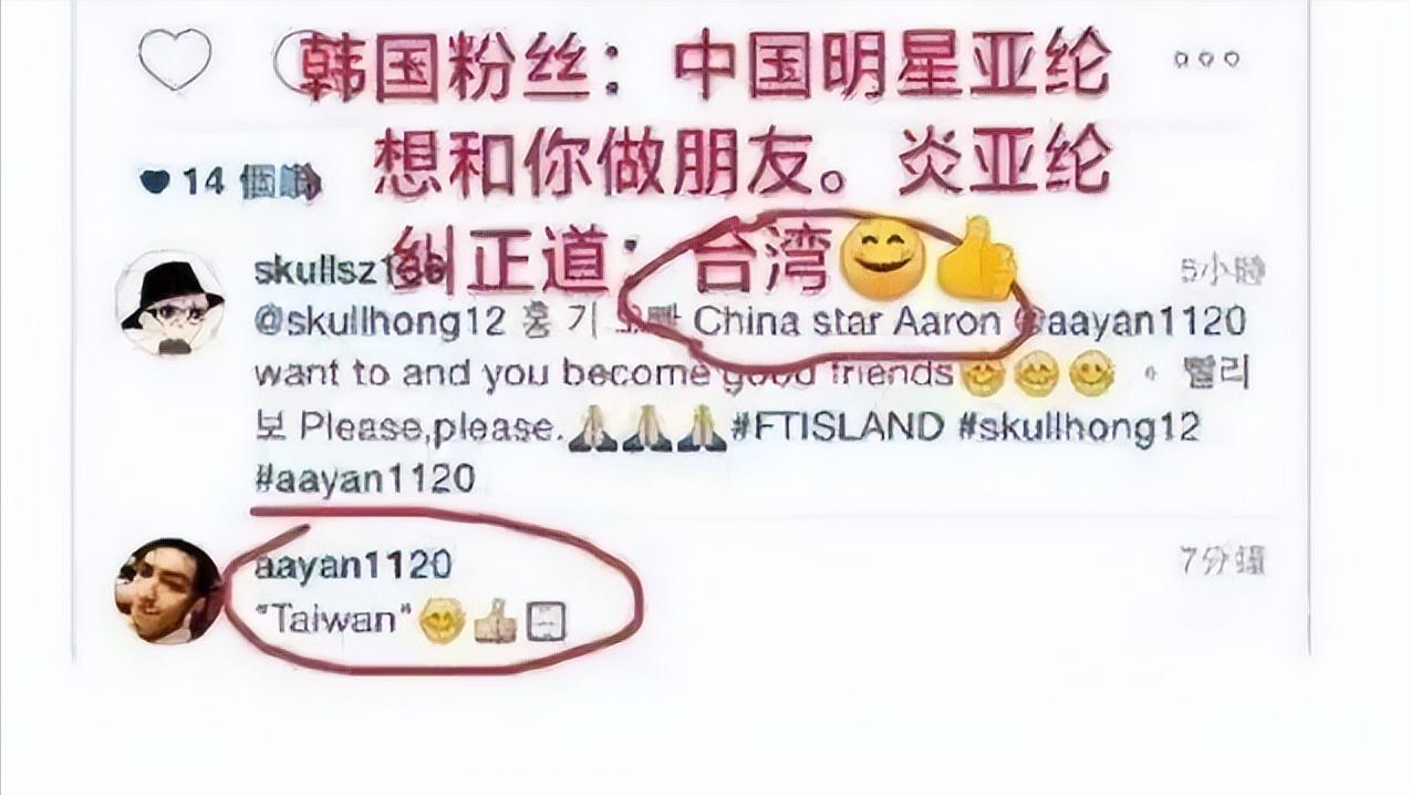 韩国粉丝称炎亚纶为“中国明星”,他看到后立刻回复,是“台湾”;