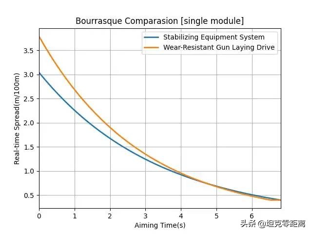 P7图中,橙色是上了紫炮控的暴风,蓝色是上了紫垂稳的暴风。横轴是速度,纵轴瞄准时间,曲线表示了该速度下到停止瞄准所需的时间。