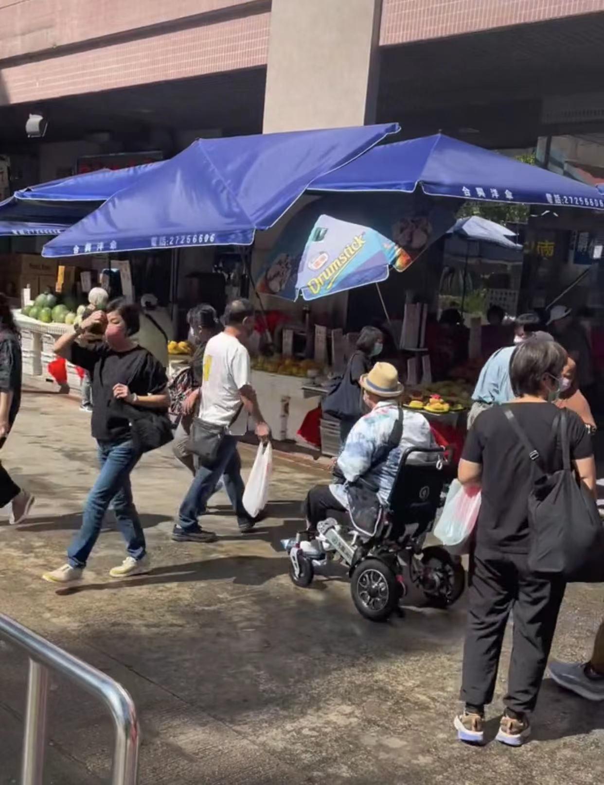 奇怪的是,市场中有许多人,洪金宝坐着轮椅从他们身旁经过,大家的反应却非常淡定,不知道是因为洪金宝过于低调,所以他们没有认出,还是因为香港人对于偶遇明星习以为常,所以以平常心对待?