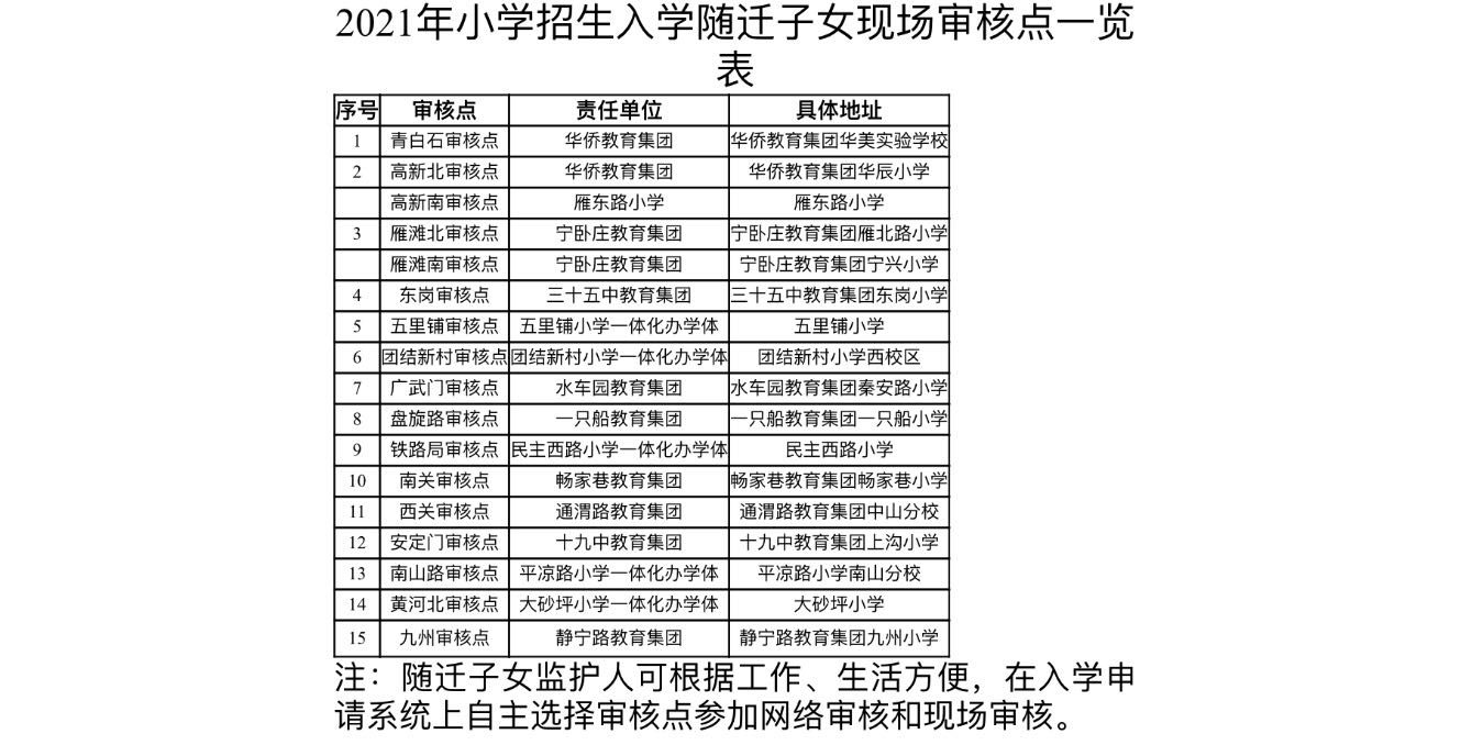 随迁子女现场审核点一览表