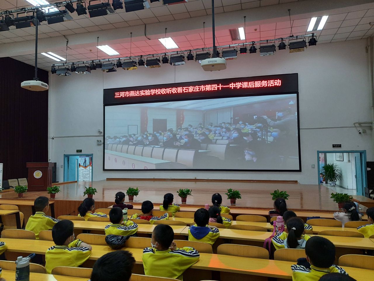 在疫情防控背景下,学校设立了主会场和分会场,通过钉钉平台、网络直播等技术手段,让全校师生参与到活动中来,实现了全员参与。据统计,本次活动石家庄市第四十一中学北校区有1500名学生在线观看,河北省课后服务近100所试点校在线观看45300余人,部分市县教育行政部门组织了辖区内学校学生同步观看。