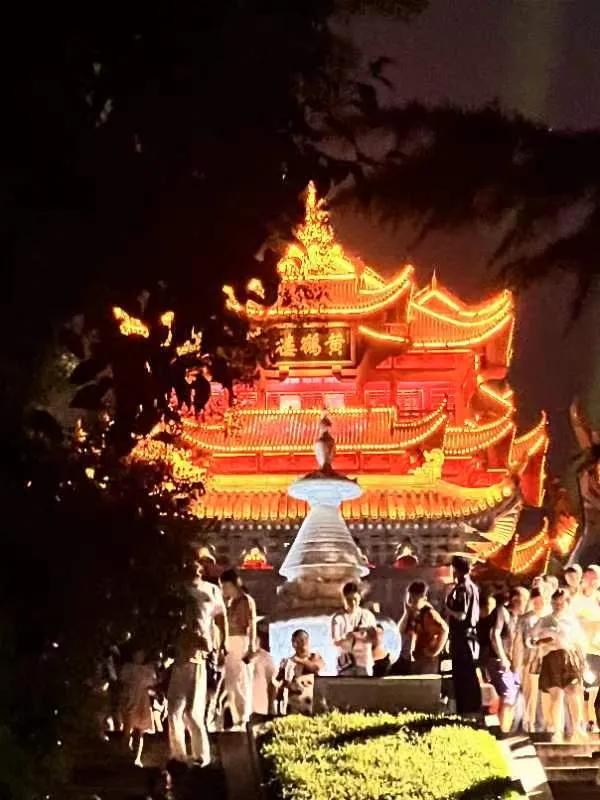兜兜转转,跌跌撞撞,终于找着黄鹤楼了!华灯初上,黄鹤楼灯火辉煌,璀璨夺目,果然气势非凡!但门票真够“便宜”啊,120元一张!