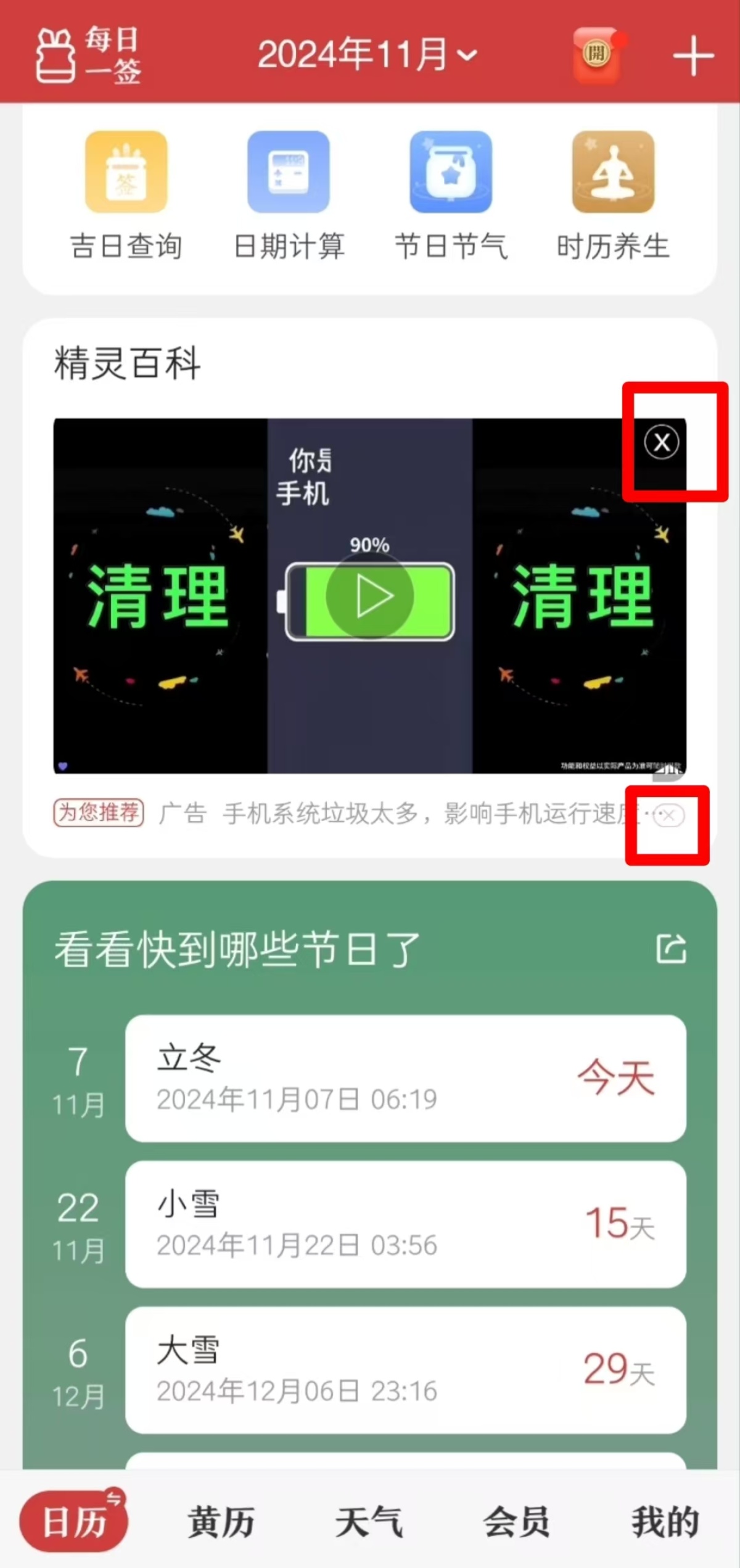 大河报·豫视频记者在“中华万年历”APP上体验时,发现多条广告总是猝不及防地出现,影响正常使用。