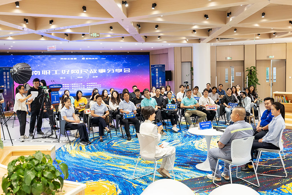 河南职工好网民故事分享会首期访谈节目通过“线上+线下”的形式向观众们传递网络正能量。王威 摄
