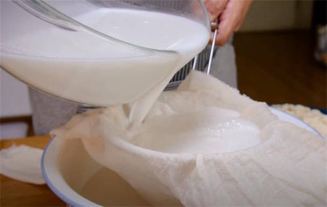 3.把面捞出来之后,然后把这个面粉水过滤一遍。