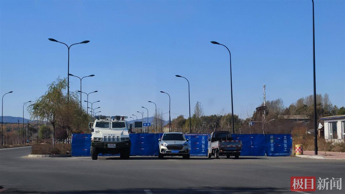 从吉林市长春路进入吉林监狱的路口,极目新闻记者发现这里停放有多辆警车,有民警、武警执勤,武警手拿盾牌。在监狱附近的村庄多个路口,均有警务人员在值守。