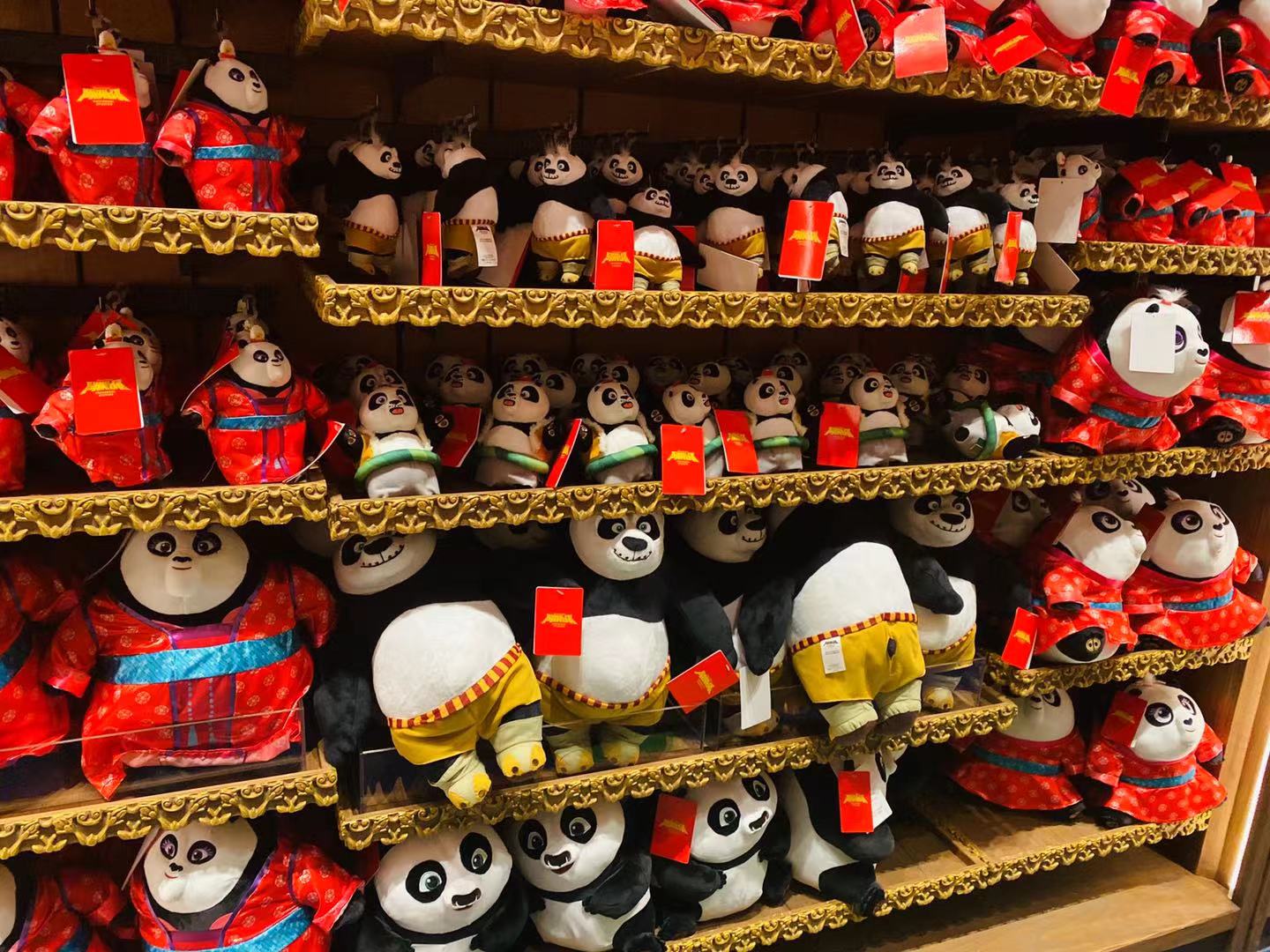 功夫熊猫盖世之地主题景区是环球主题公园首个以“功夫熊猫”为主题的景区,平先生神龙大侠大百货里售卖丰富多样的功夫熊猫主题相关商品,90%的产品都由中国团队设计、研发,且仅在北京环球度假区独家发售。