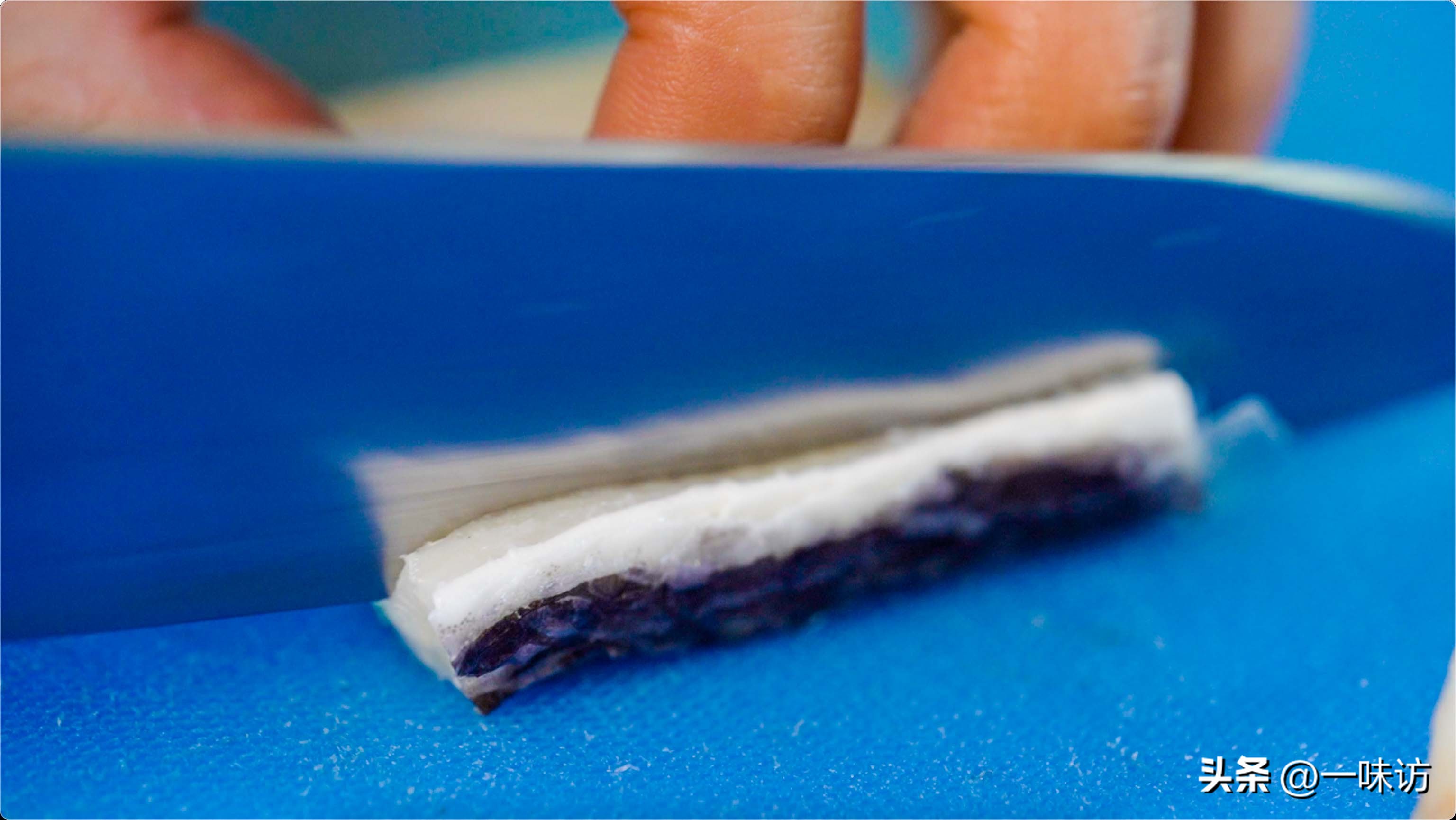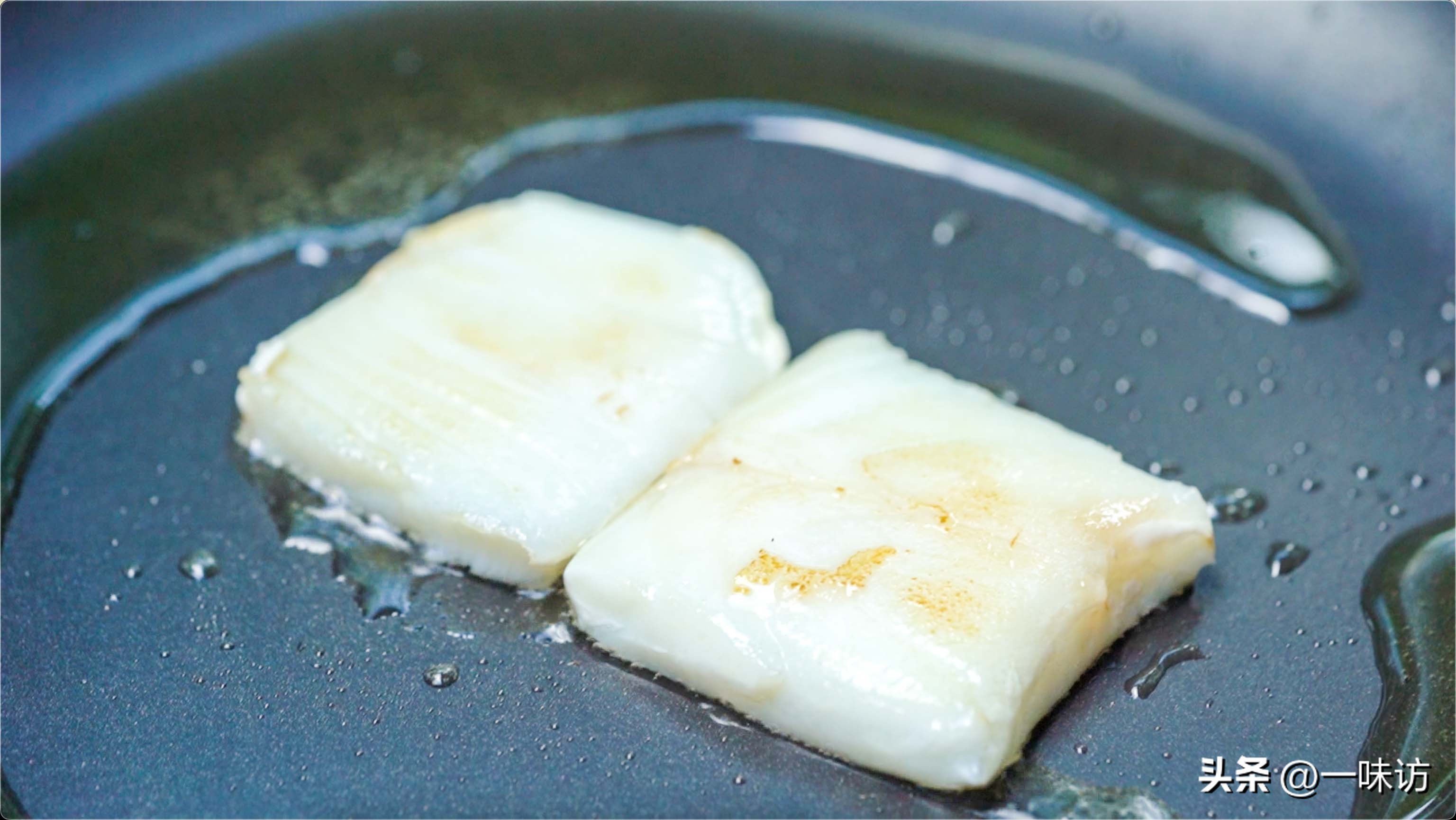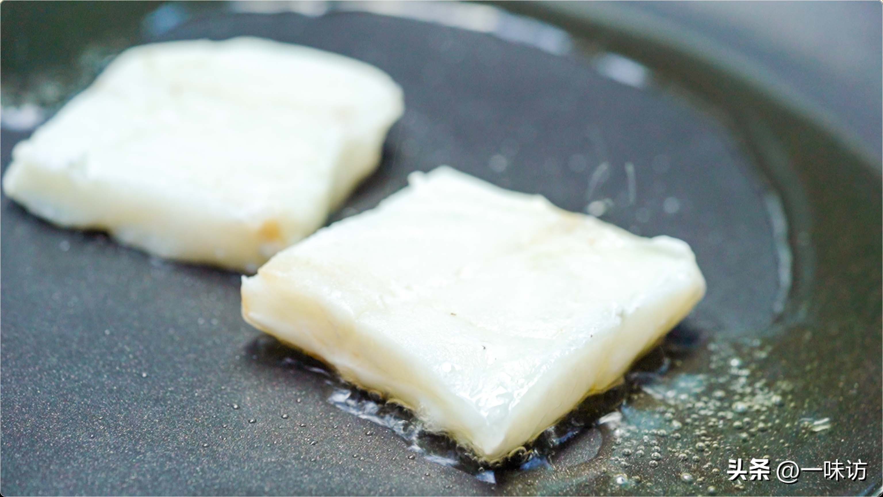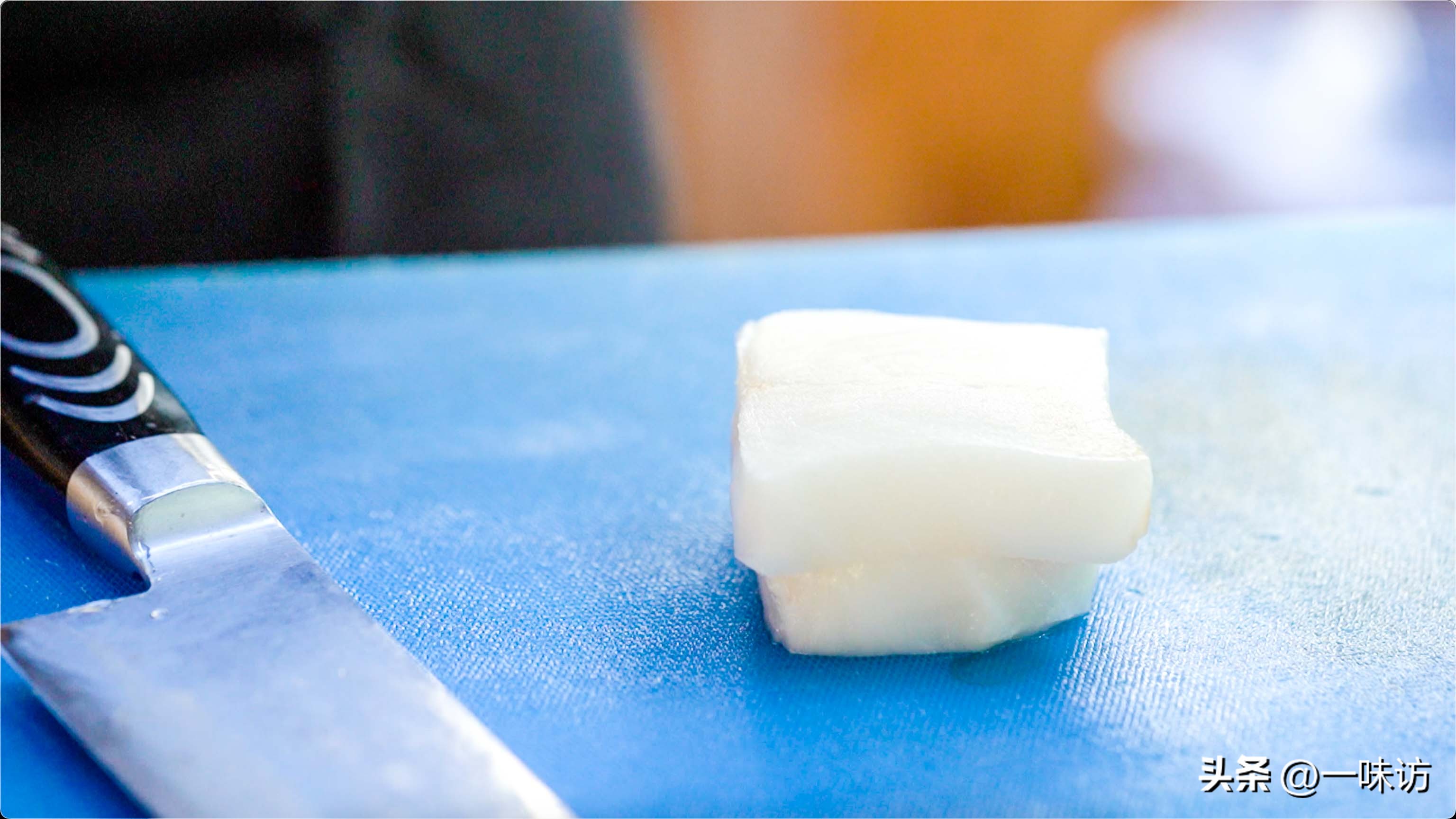 鳕鱼则切掉外皮留住嫩肉,然后用刀把肉切成大小均匀的块备用。
