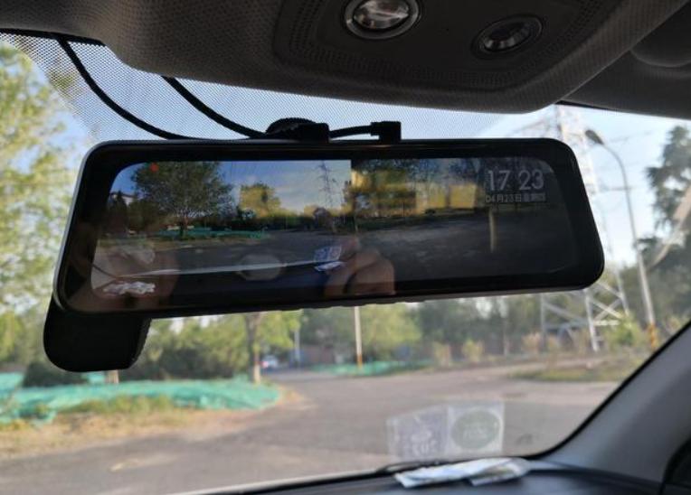 我第一次装记录仪时,把镜头对准后视镜中间,结果被后视镜底座挡住1/3画面。正确位置:
